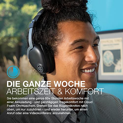 IM LIEFERUMFANG ENTHALTEN: JBuds Work Wireless Over-Ear Headset, abnehmbare Ohrmuschel, USB-C-Ladekabel, USB-C zu 3,5 mm AUX-Kabel für den kabelgebundenen Betrieb und eine 2-jährige JLab-Garantie. Perfekt für den Büroalltag oder das Home Office! Ideal für Anrufe und Videokonferenzen mit praktischer Stummschaltanzeige am Mikrofon.