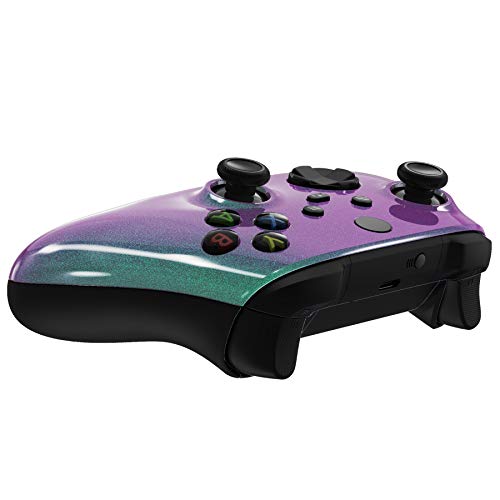eXtremeRate glänzendes Front Case für Xbox Series X Controller, präzise Schnitte für besten Komfort, DIY-Ersatz Hülle Chamäleon Grün Lila für Gamer